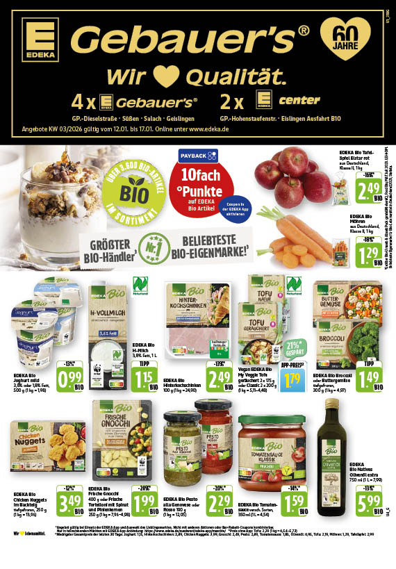 Entdecken Sie die aktuellen Wochenangebote von Edeka Gebauer für Märkte im Raum Göppingen, Bonlanden, Eislingen, Salach und Umgebung.