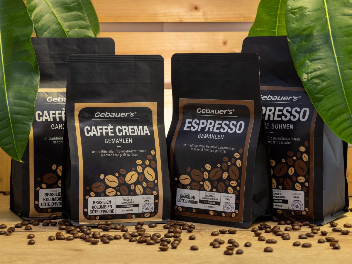 Unser Eigenmarken Kaffee ist fester Bestandteil des Gebauer’s Sortiments und steht für bewusst ausgewählte Qualität und verlässlichen Kaffeegenuss. Bei der Auswahl und Röstung legen wir Wert auf ein ausgewogenes Aromaprofil, das sowohl mild als auch vollmundig ist und sich vielseitig einsetzen lässt. Der Kaffee eignet sich für unterschiedliche Zubereitungsarten vom klassischen Filterkaffee bis zur Kaffeemaschine mit Mahlwerk und begleitet den Alltag ebenso wie besondere Genussmomente. Erhältlich als ganze Bohne oder gemahlen bietet unser Eigenmarken Kaffee Flexibilität und Komfort ohne dabei Kompromisse beim Geschmack einzugehen. Damit ergänzt er unser Eigenmarken Sortiment um ein Produkt auf das sich unsere Kundinnen und Kunden täglich verlassen können.